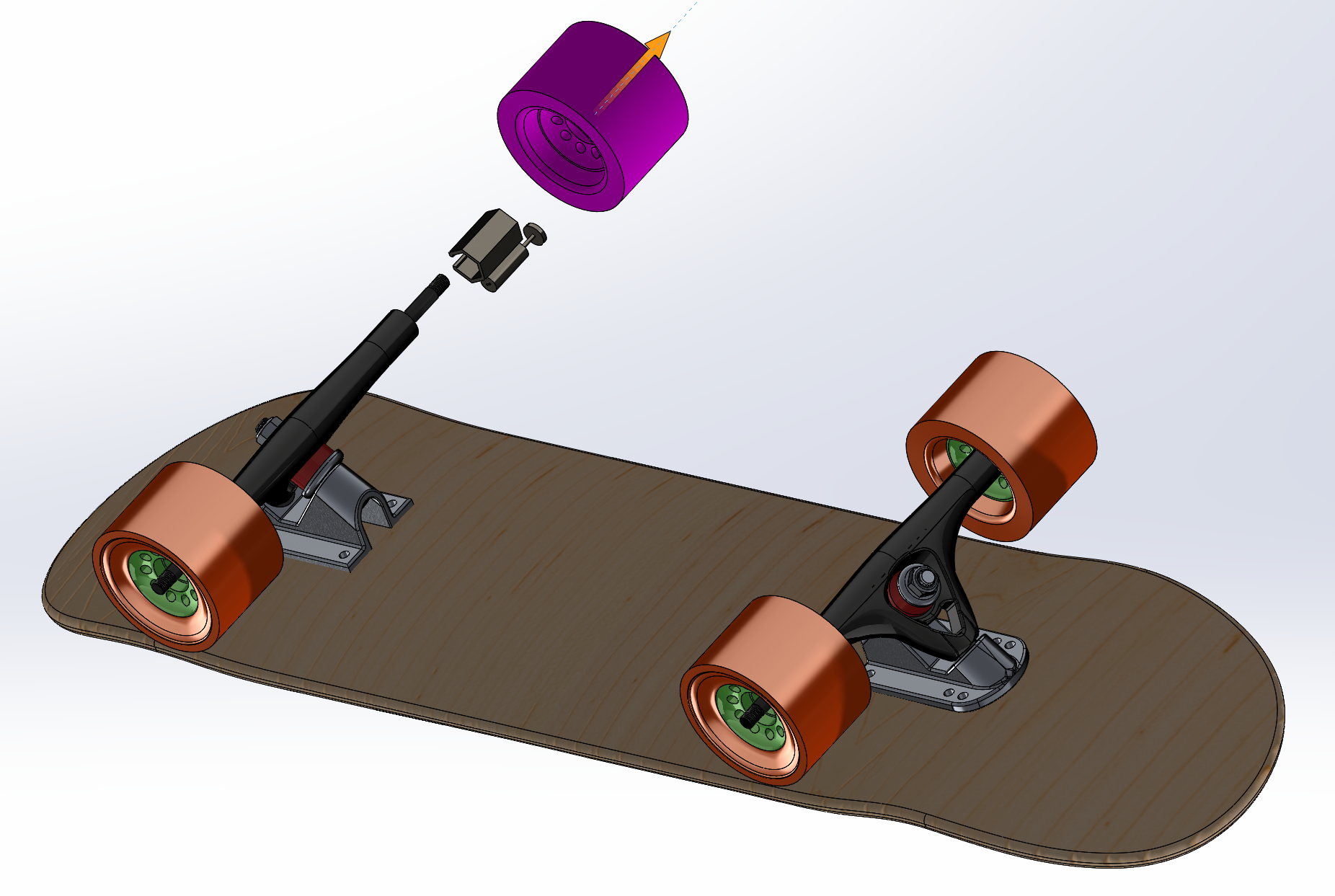 My partner Josh Amauro and I both have an inclination for skateboarding and focused on this field in which to innovate. After doing our preliminary patent research through Google Patents and the USPTO database, we settled on a dynamo attachment for skateboards that couples onto one of the trucks. This dynamo is driven through the frictional contact along the inside of a skateboard wheel. While regenerative braking technology exists within the electric skateboard world, it has yet to be applied to the classic model. Here, you can attach the device to any skateboard truck using the deflecting coupler. The motion is then driven through the kinetic energy of the pushed skateboard which in turn charges the rider’s personal electronic device, most notably phone. Longboards and skateboards are becoming an increasingly popular option for personal transportation within cities and towns. The DynaMotor gives the option to always have a power source in the scenario that your device is low on battery during your cruise.