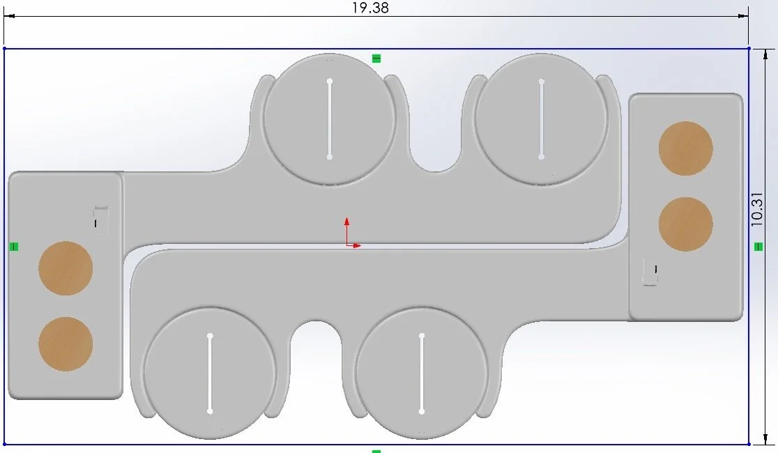 Due to time and print-bed size restrictions, I elected to use CNC machined foam over 3D printing to validate the design. At a cheap cost, this allowed the fit and layout of the components to be physically verified. The foam prototypes directed the decision to make some final tweaks such as expanding the central boss to a circular geometry, implementing ingresses to allow for easier pickup of components, and flipping component cavities.